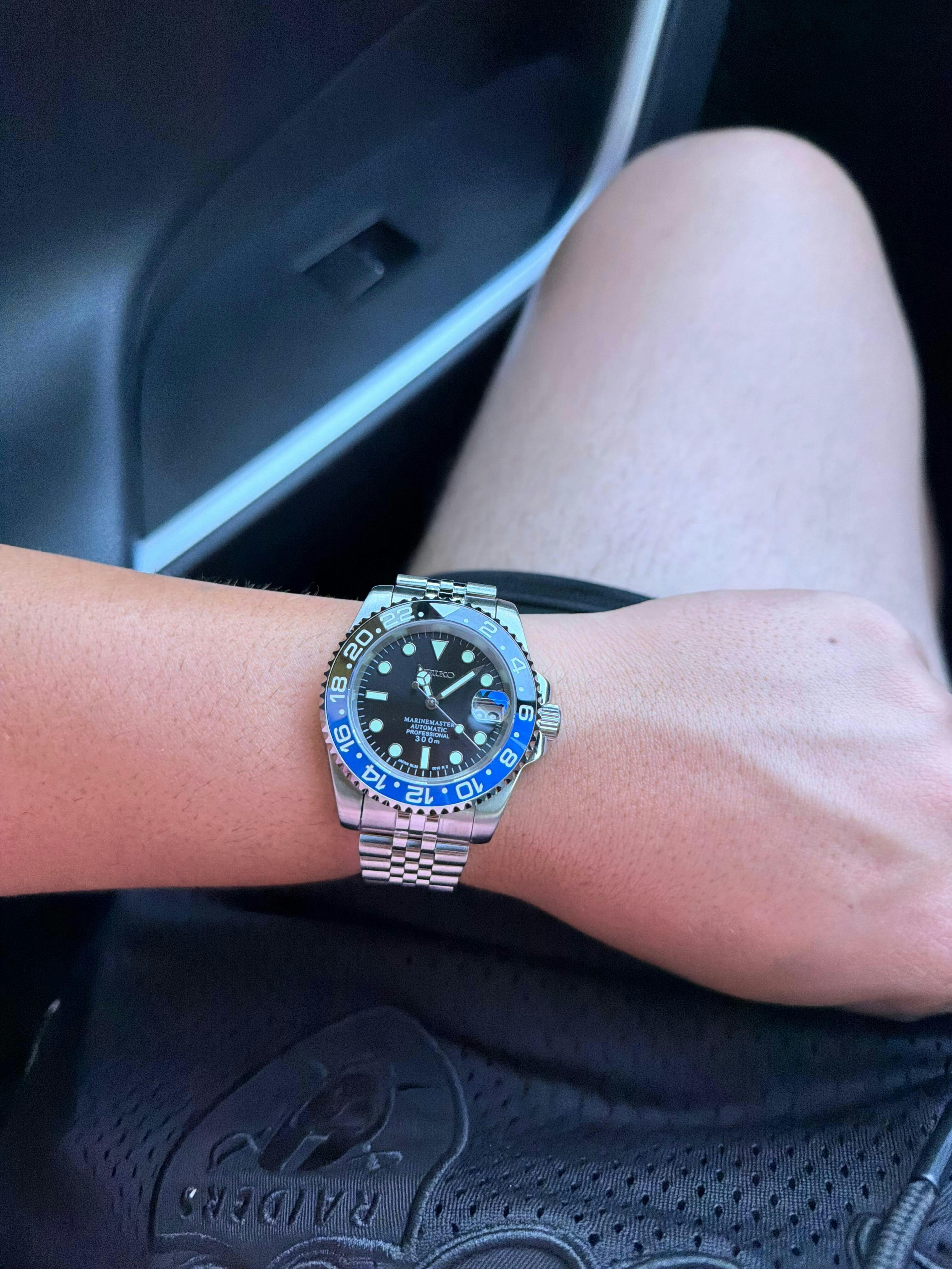 Featuring a high-gloss ceramic bezel, scratch-resistant sapphire crystal, and luminous Mercedes-style hands, the Batman Mod is both functional and head-turning. Paired with the iconic Jubilee style bracelet, it delivers unmatched comfort and vintage-inspired charm.