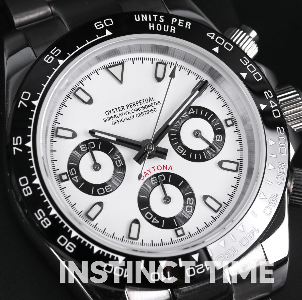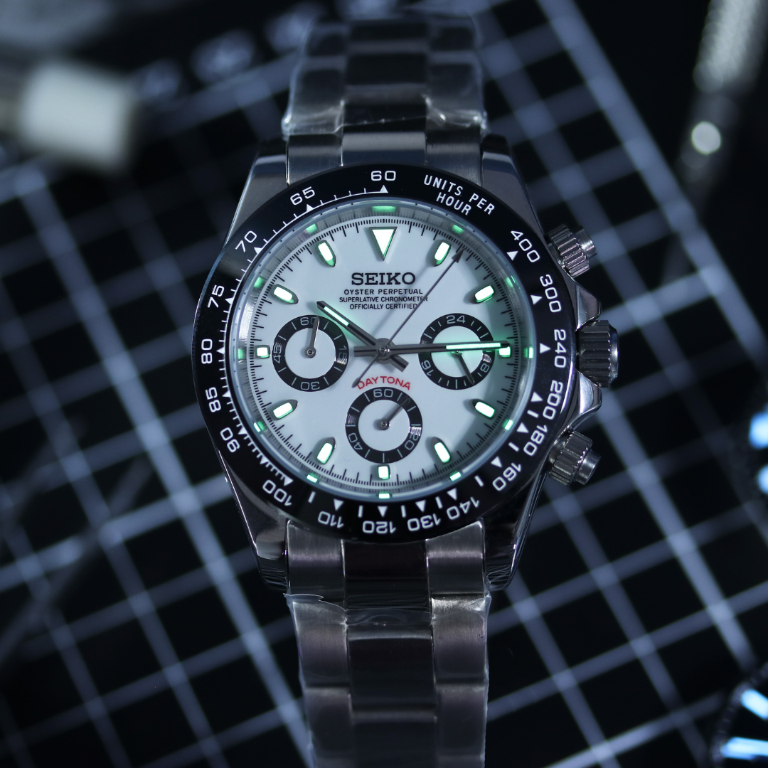 At the heart of the watch is the dependable VK63 movement, a mecha-quartz hybrid that offers the best of both worlds: quartz accuracy with a mechanical chronograph feel. With full chronograph functionality, a screw-down crown, and sapphire crystal glass, the Seitona Panda is built for everyday wear and precision timing.