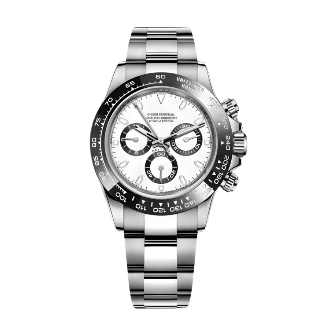 The bracelet features removable links and a micro-adjustment clasp, giving you a perfect fit straight out of the box. Featuring a polished black ceramic bezel, luminous hands, and a scratch-resistant sapphire crystal, this timepiece blends classic chronograph styling with rugged performance.