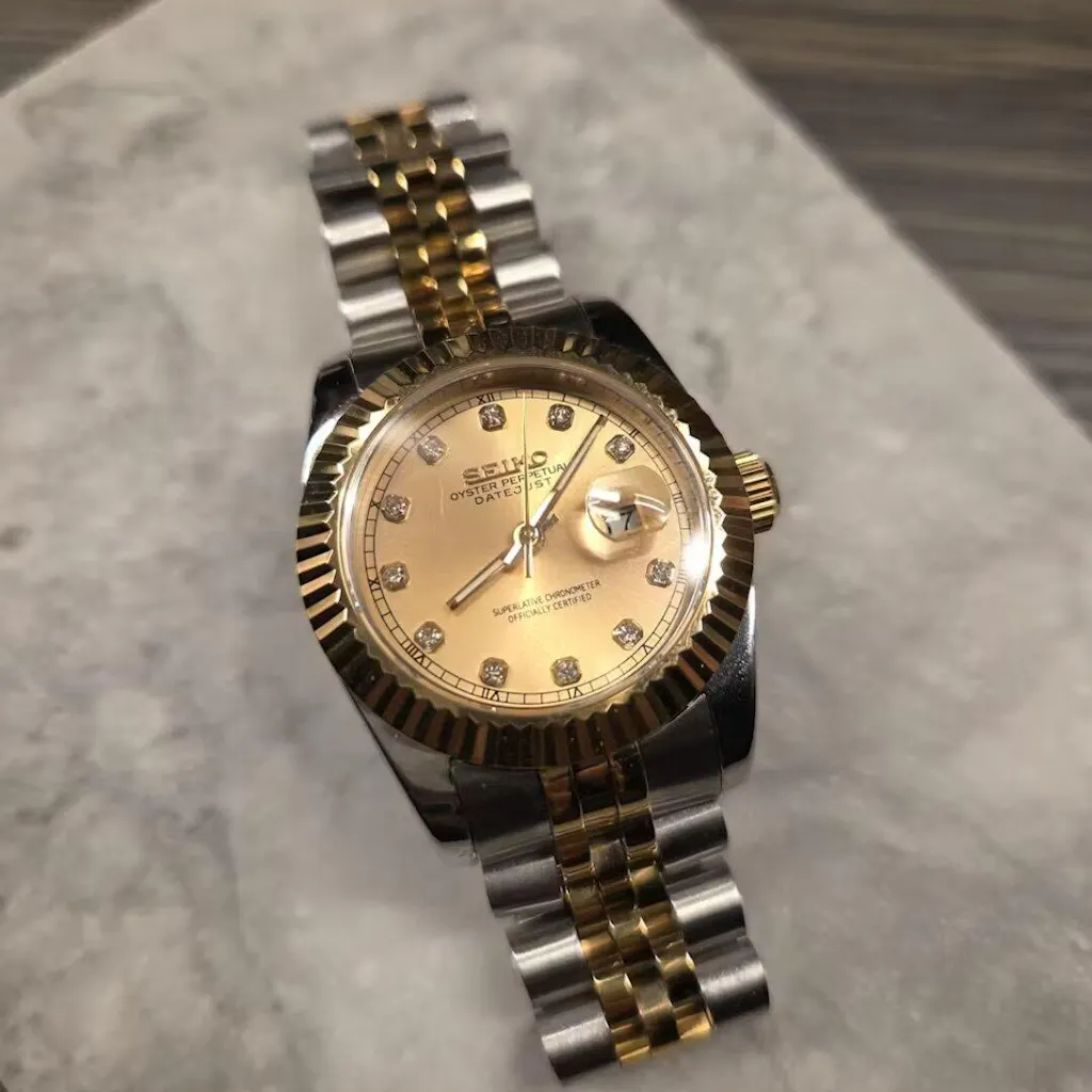 This Custom SeikoJust seamlessly blends classic design with cultural elegance. Whether you're navigating daily routines or attending special events, this timepiece offers a unique fusion of tradition and modernity.